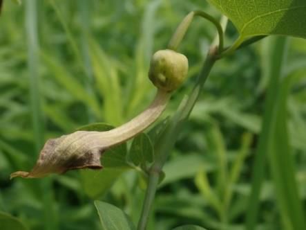 はじめての担当で不慣れだったが、皆さんのご協力により、何とか観察会を行うことができた。今回は、水辺の草花と森の草花を見ることができるコースでした。最初に遭遇したウマノスズクサ(ジャコウアゲハの食草)は、普段、蔓を見かけることは多いが花を見る機会は少なかった。ちょうど花の時期に当たり、不思議な花の形を写真に収めることができた。また、ミクリ、トウゴクヘラオモダカ、ヒトツボクロ、アギナシ、タコノアシ、ムサシアブミ、キンセイランなど、茨城県のレッドデータブックに掲載されている植物も観察することができ、地味な草花が多いものの、県北の山地とは少し違った植物を見ることができた。